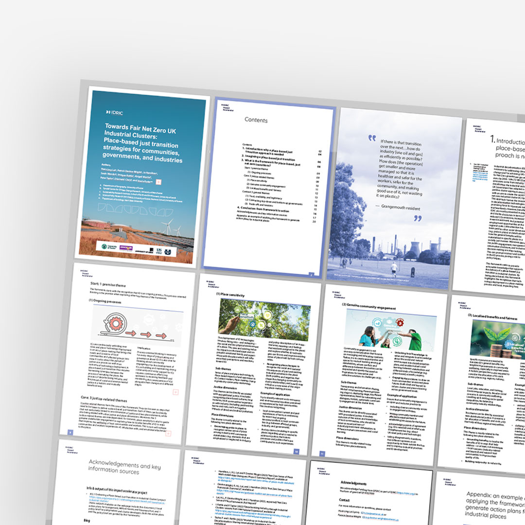 The IDRIC Impact Accelerator is a research project led by the University of Exeter, aimed at generating actionable knowledge for the industry and local communities to foster a placed-based and socially fair approach in the industrial decarbonization process. In this proje t, my role involves serving as a visual resource expert, responsible for visualising research concepts and outcomes through charts, graphics, videos, and other mediums.